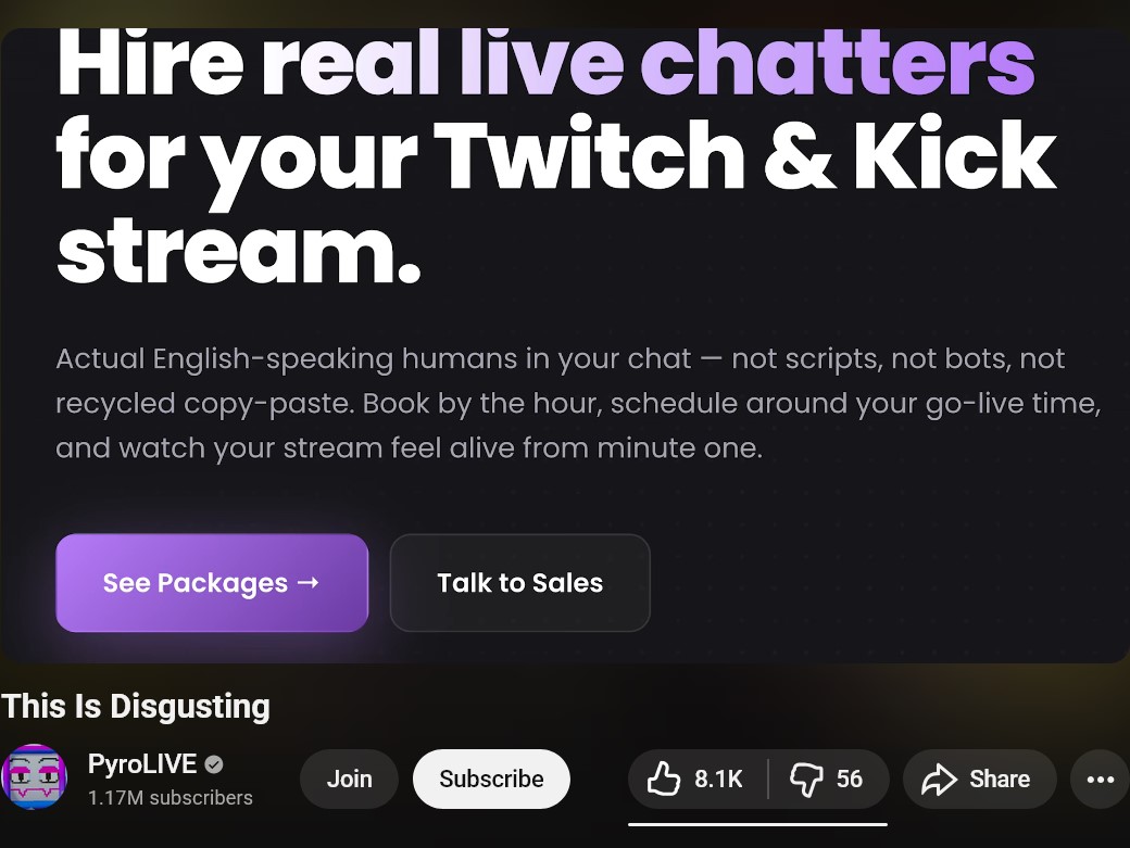 >>948252228Yeah I noticed that some of her "chatters" only type in her chat, never seen any of those usernames in any other channels