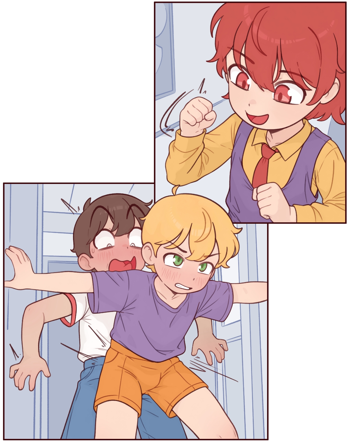 >>948257144Is brunette boy getting molested by blonde and redhead?