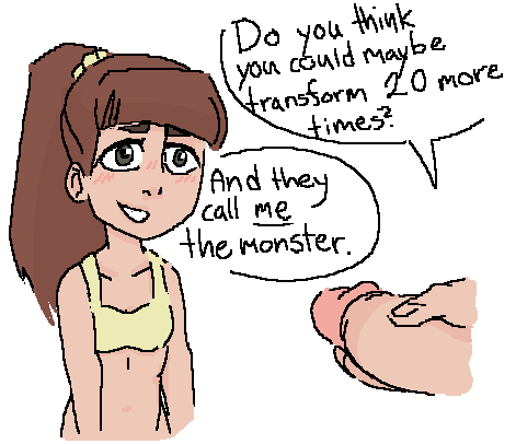 >>948310709I didn't know there's a girl in Invincibles that transforms into some kind of monster thing, and every time she comes back to normal, she gets younger. And apparently she has a belt that lets her change her age too?Maybe I will watch the show now...