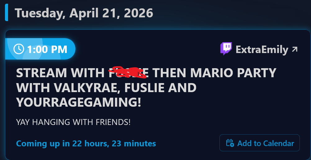 Looks like the irl with fuslie was indeed cancelled, all EE gets is the group mario party session