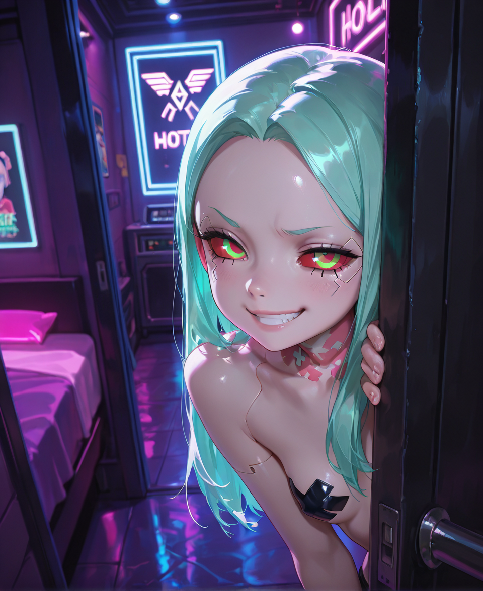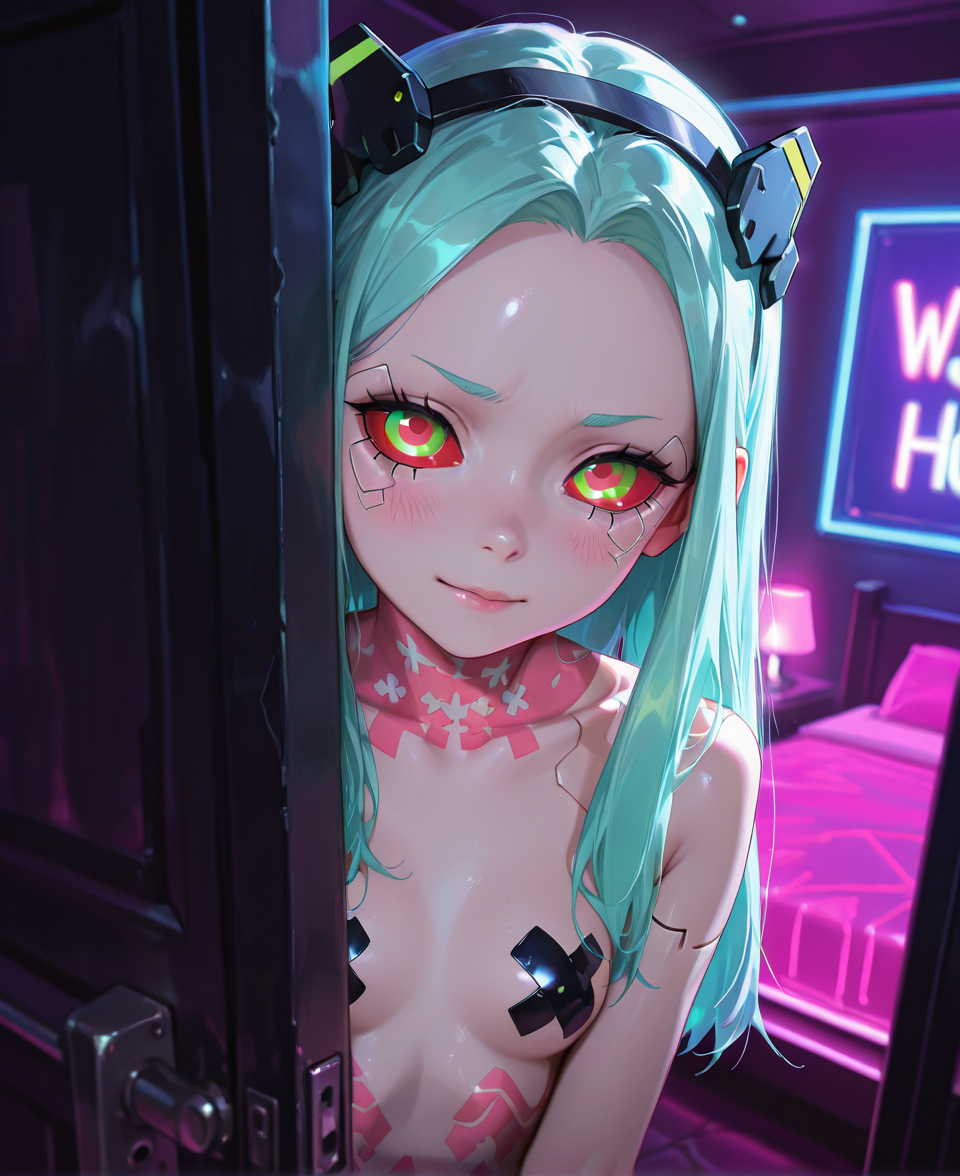 >>948373832Would love to see Rebecca from Cyberpunk Edgerunners like this with semi seethrough neon pasties