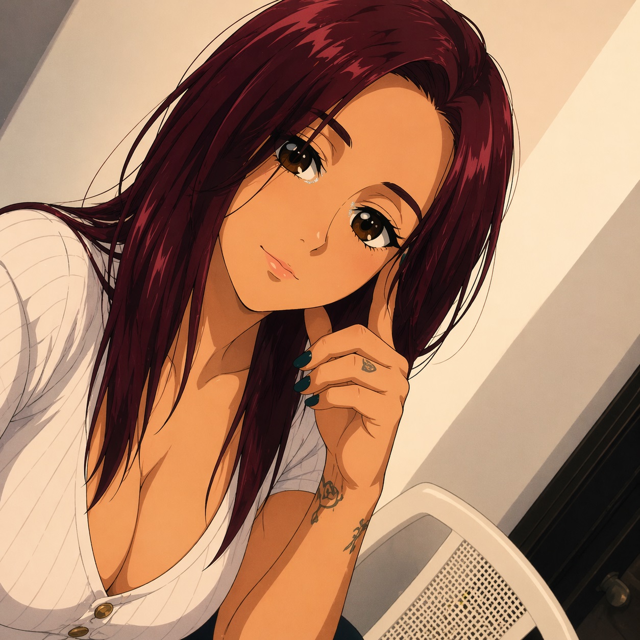 >>948380243Hihi, love the new style! <3 <3 <3 <3 Sorry I haven't said anything until now, this new checkpoint/lora is pissing me the fuck off.This is apparently "laughing" >:|