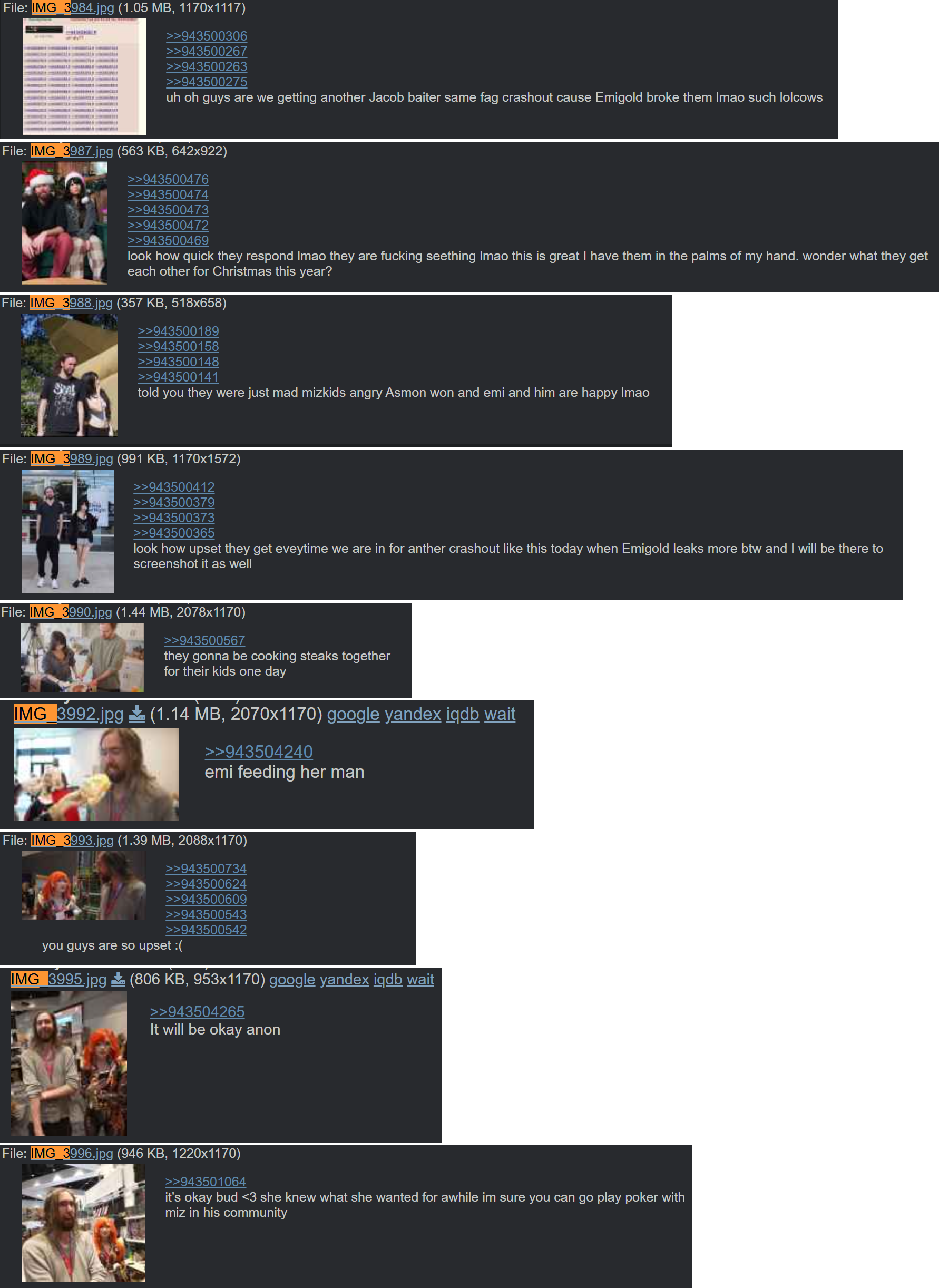 >>948536902>just know emi and asmon are fucking ;)Jacobaiters can spin their fagfics 24/7 but if only they know what I know. Hehehehe...maybe one day I will share.