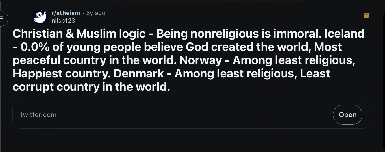 >>24180281Religion is just something a lot of people feel a spiritual need for, to give them hope and so on.It's not an issue when it's a sensible religion. Look at Japan for example, you do not see any clashes between people believing in Shintoism and those who don't.It's only an issue when it's an aggressive religion like Islam (and in the past Christianity, although not really nowadays anymore) which aims to spread itself through violence.