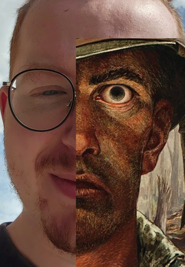My favorite part is that I actually mistook his bulbous bald head as part of the helmet. It tracks. At first I saw it as a problem. Then I realized it was a STATEMENT.