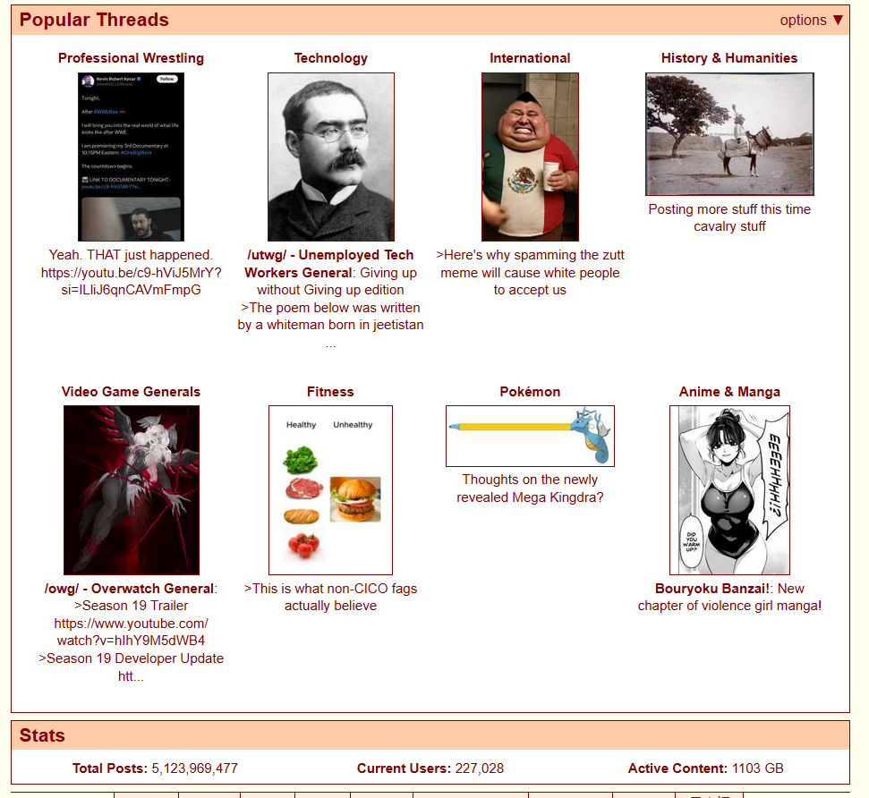 ITT: Interesting and unusual stuff that's happening on the boards you visit.Non-happenings, habbenings, haqqenings, small GETs, complaints about shit boards being shit, known spergs sperging out, personal report buttons and blogposting / avatarfagging et al. belong in the nonexistent /nah/ thread at >>>/bant/nahPremium happenings, goldppenings, diamondppenings, rare GETs, great posts from great boards, users loved by everyone, secret meetups with mods and exclusive entries in blog.4chan.org belong in the 4chan pass-only thread at >>>/vip/happeningsPast happenings: https://wiki.bibanon.org/4chan/HistorySee how active 4chan boards are in real time: https://4stats.ioSearch 4chan: https://find.4chan.orgArchives: https://wiki.archiveteam.org/index.php/4chanPublic ban archives (no longer updated): http://185.10.68.107:1776/ (4bans) & https://hiddenservice.cc/bans (IPv6 only)Self-serve ads: https://4ch-ads.pages.dev/Enhance your 4chan Experience (no 4chanX): https://rentry.org/4chan_Userscripts_1Enhance your 4chan Archive Experience: https://rentry.org/FoolFuuka_UserscriptsYotsuba catalog: https://catalog.neet.tv/4chan media browsers: https://thread-puller.party/ (Images) & https://www.4webm.org (Webms / [wsg])How to access IRC and contact the mods: https://desuarchive.org/qa/thread/1654916/#1690512Previous: >>23462031 | https://archive.palanq.win/bant/thread/23462031/
