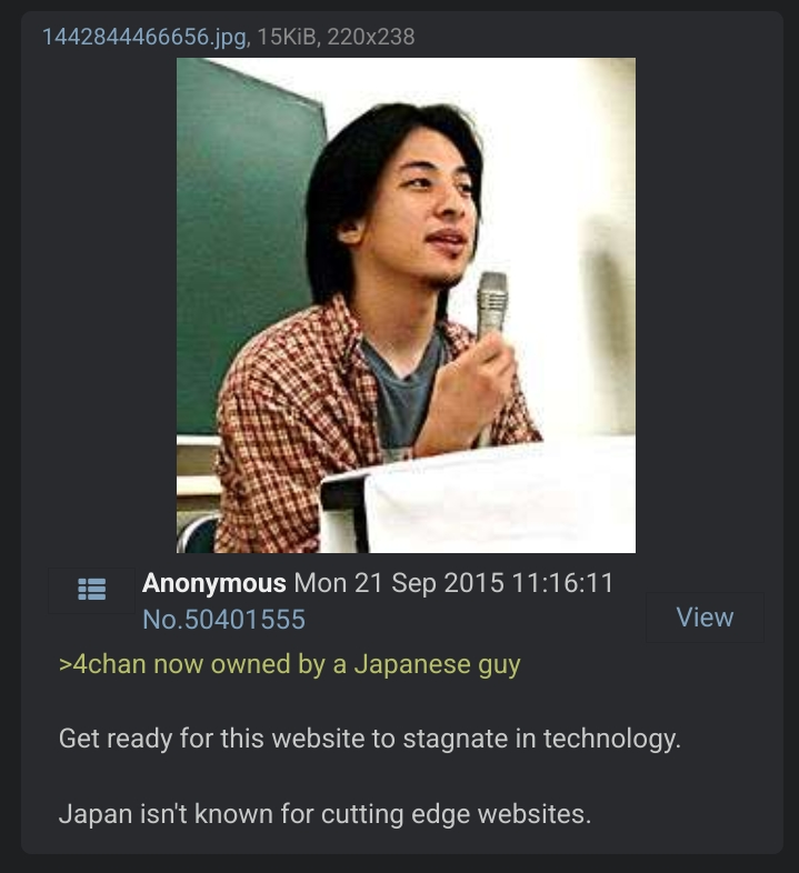 >>23544118It basically is what you thought it was, /leftypol/'s existence was cope on the 8/pol/ owner's part that /pol/ was not a right-wing safe space and that he didn't have control over any board but his own (apparently he was already a neurotic freak who demanded control over /pol/ boards and equivalents across webring imageboards, and would threaten to spam/DDOS sites and report them to feds if they didn't give him /pol/ moderation)Eventually he lost ownership of cripplechan's /pol/ because he disallowed the word "nigger" on the board and the hypochondriac neo-nazi userbase he cultivated was so outraged they spammed the site to the point of choking its servers, it was taken from him the next morning for trying to ban the global admin from /pol/ and copy-pasting a global rule at him. When it came under admin ownership its users spent a very long time moaning that they couldn't report anybody for wrongthink anymore, and ultimately Jim Watkins trying to rebrand to 8kun and other legitimization attempts meant any kind of board with /pol/ in the name was banned for a long timeAnd that is the story of why anybody complaining about leftypol on 4chan is a webring imageboard reverse-migrant or their malformed offspring; they're a neo-nazi without a home