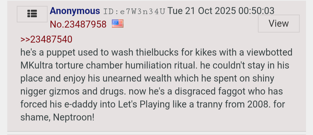 >>23584950Feel the same about Suck. Only place that talks about him is here. No reddit, kiwitroons, no nothing