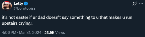 >>23584998Exactly. He mentions better times constantly but who gives a fuck.