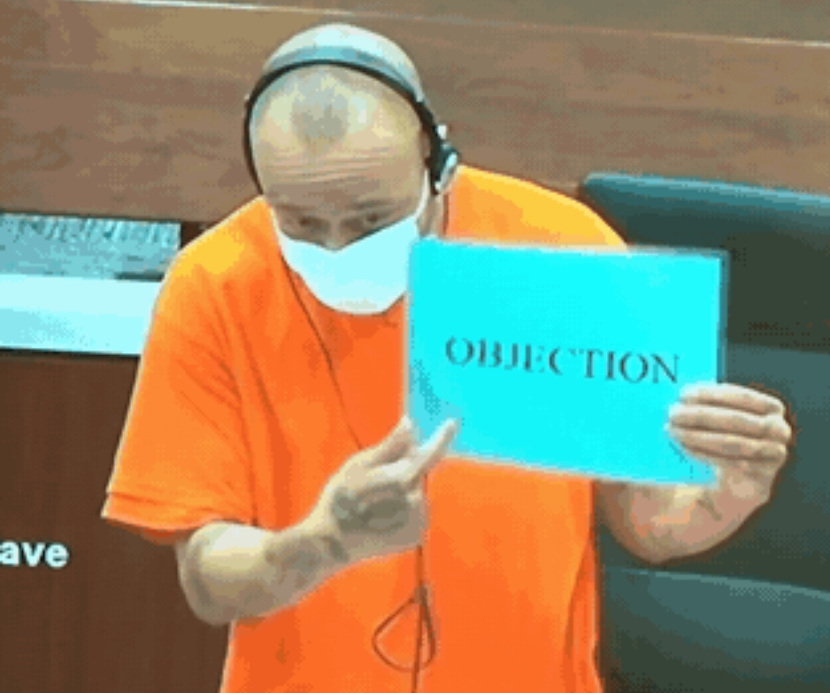>>23607336Claire is currently staring daggers at the judge via zoom. Constantly objecting by saying "grounds" as her only defense.