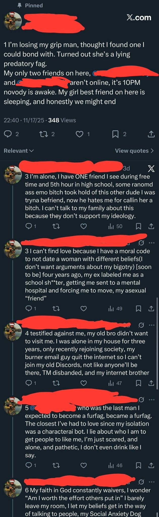 >>23652786You’re getting worked into finding psychological solutions over 4chan banter. Perhaps you aren’t cut out for this place anymore chat. And since this is basically your entire life, you’re essentially better off dead.Damn…