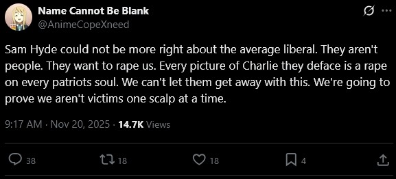 Noticed Sam hasn't tweeted or posted anything on IG about Buckingham but most other MDE adjacents have. Sam "faggot" Hyde.