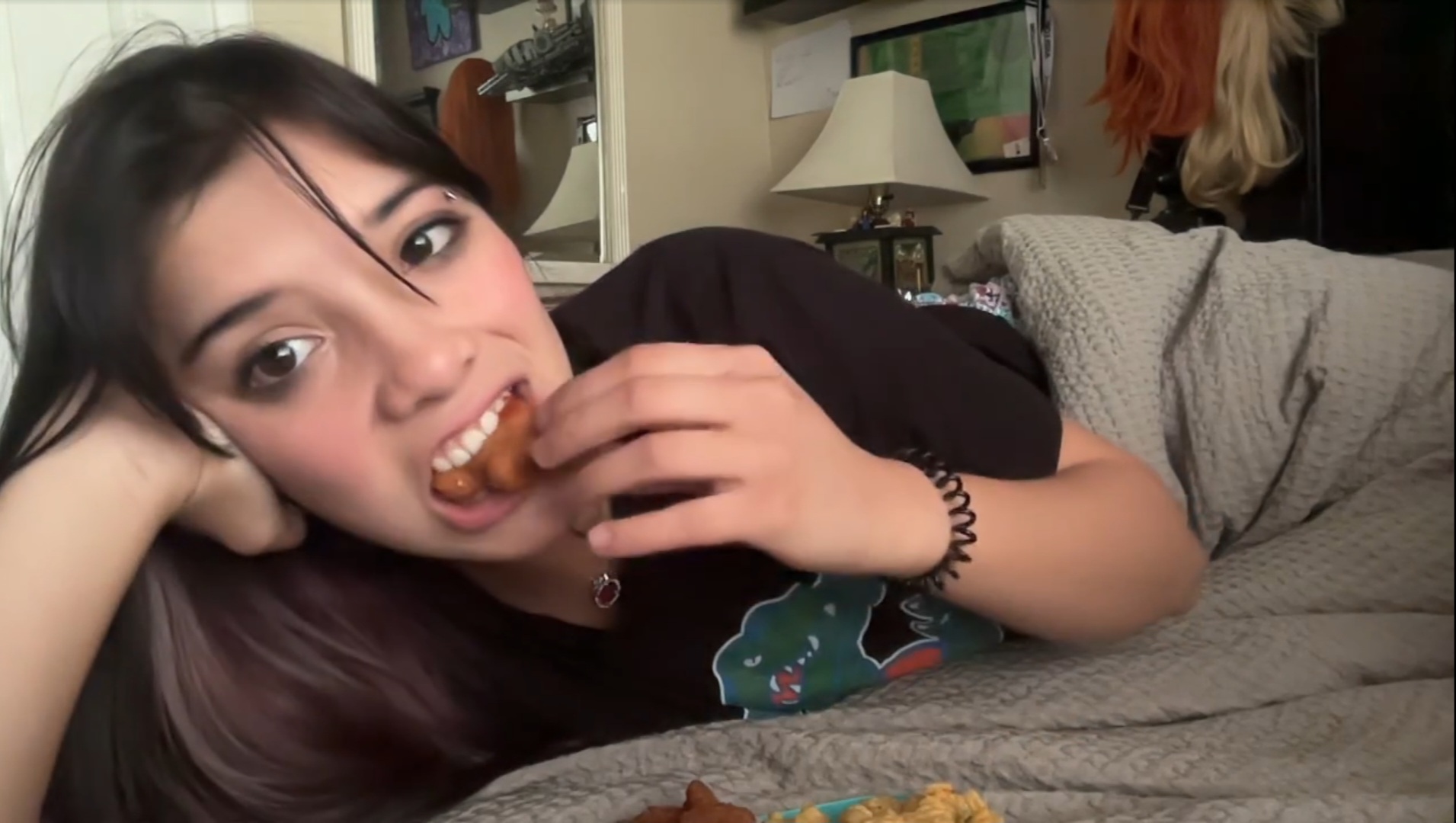 big shadia eating a bucket of chicken. a whole bucket. all at once.