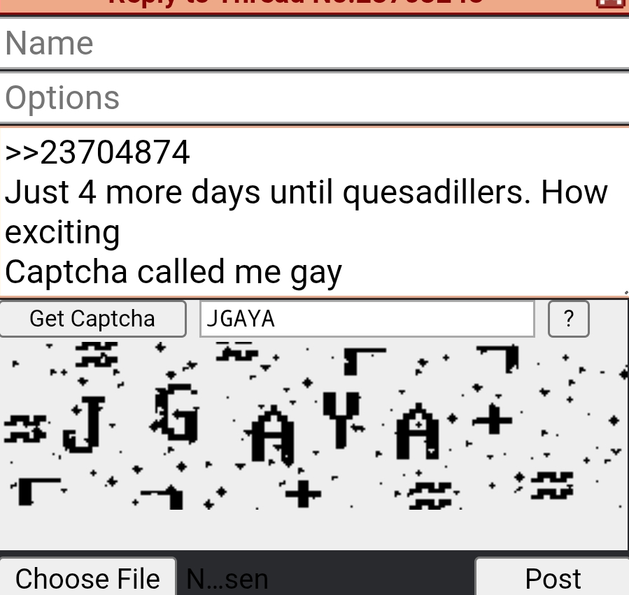 >>23704874Just 4 more days until quesadillers. How excitingCaptcha called me gay