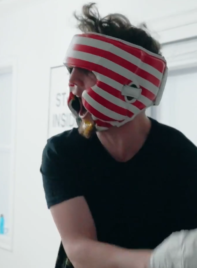 scott sullivan mma hyping himself up for his first shift as a mall santa by shadow boxing and ripping the suit to shreds as soon as he moves