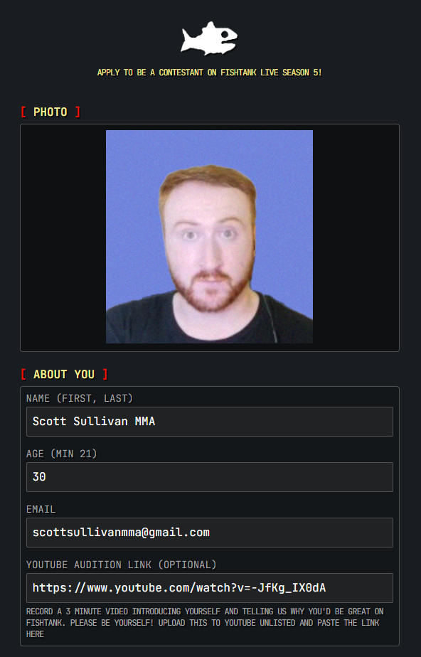 Have scott apply for s5 live on stream
