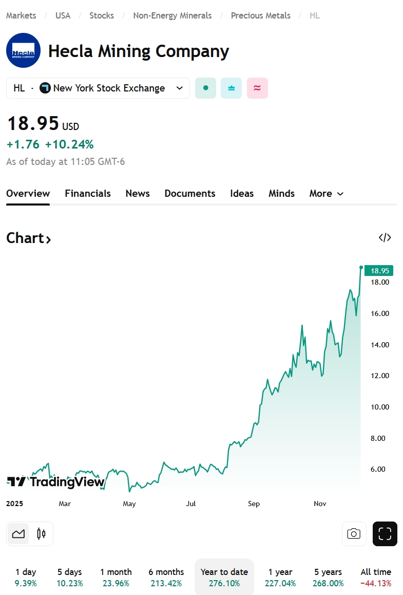 Hecla getting a little FOMO today