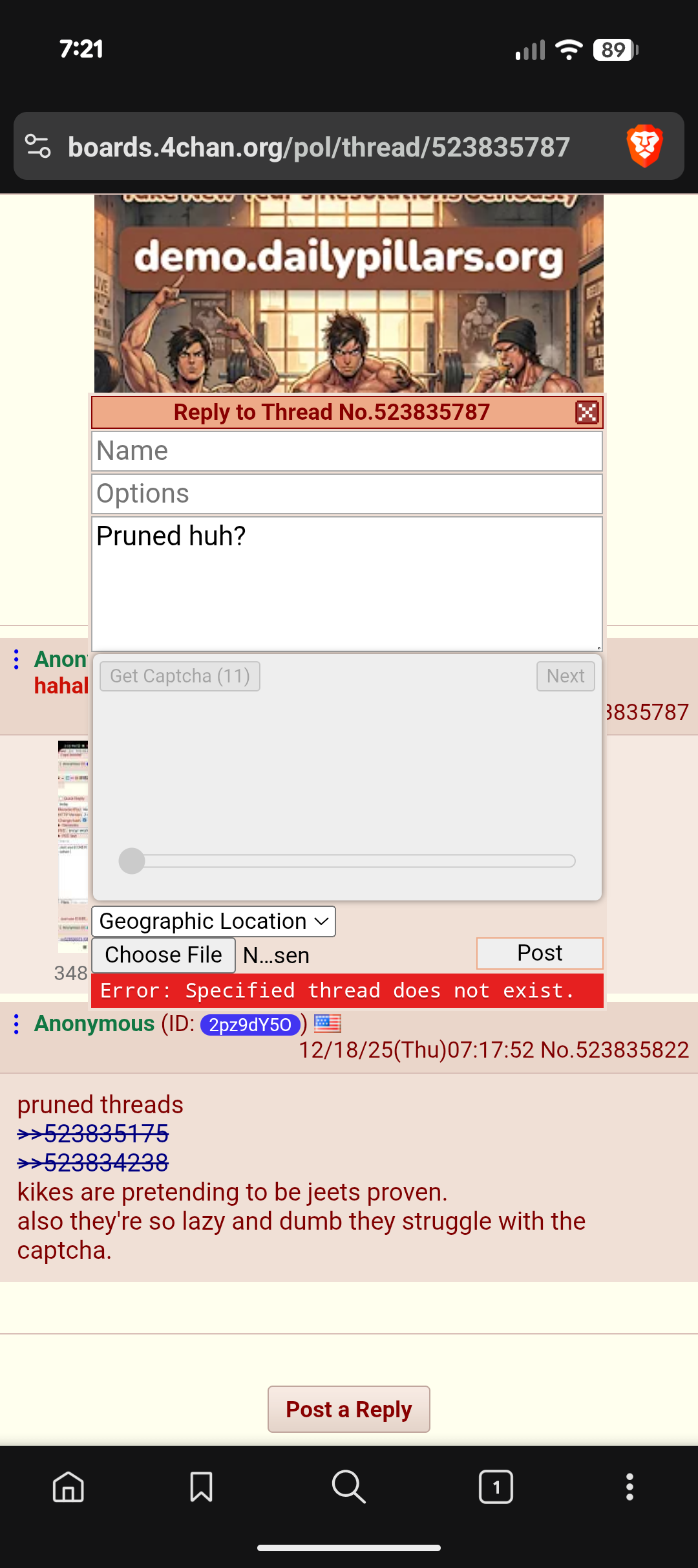 I been getting consistently banned from pol for asking about a picture. It is political because they are influence politics in my country.The ban has been consistently for being off topic.I'm going to post this image here because my ban said to take it to banter.So I again ask. Why is this image being immediately pruned and erased when I ask about it?Why am I not allowed to discuss Israeli influence on pol and american politics?
