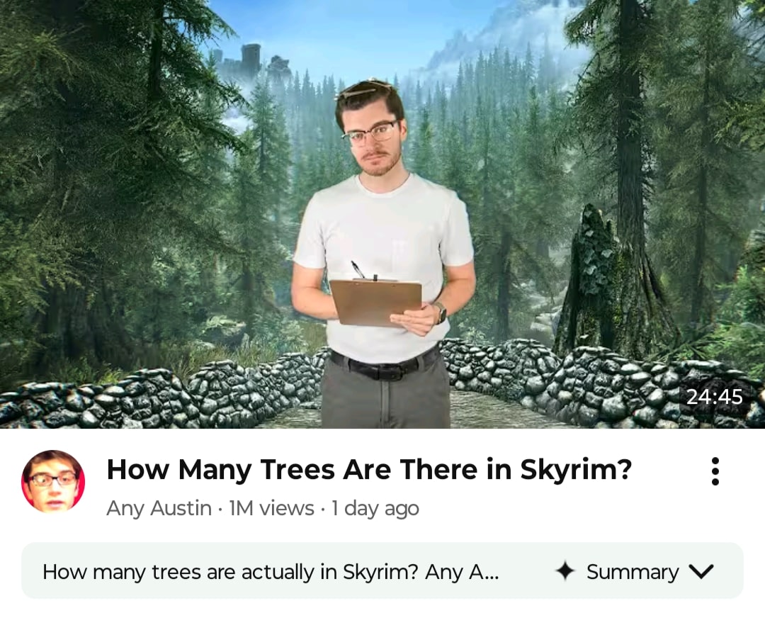 >>23784949idk maybe some dumb video about trees in Skyrim or something ૮ɦαƭ