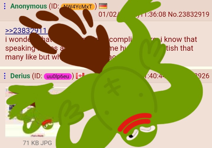 >>23833089I think it’s just a bunch of Polish people who LARP as Striby. If you notice he hasn’t done the strib posting in a long time, that’s why I think it’s a number of Polish LARPers.