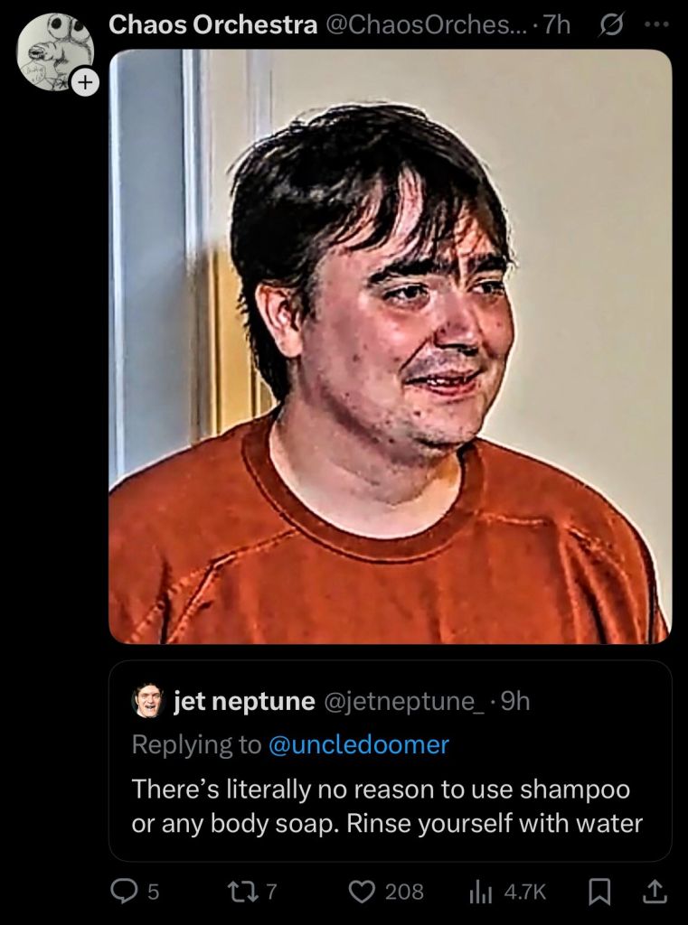 >>23834901>doesn't use soap or shampoo no wonder all these poor women are traumatized and feeling RAPED afterwards ૮ɦαƭ