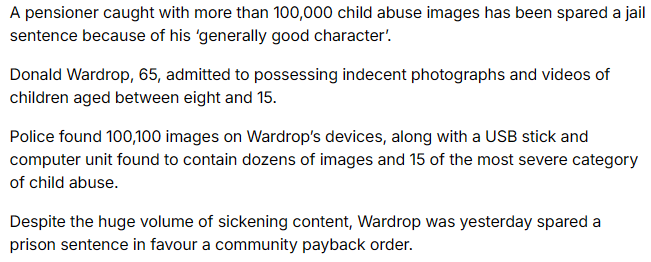>>23835122You guessed right!>Mr. John Doe, you have been sentenced to life without parole for possession and distribution of child pornography.