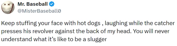 >>23835145ur gimmick is stolen https://x.com/MisterBaseball0