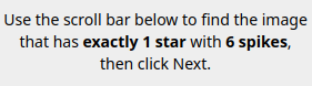 >Find 1 star with exactly 5 spikesHOW DO I SOLVE THIS? THEY ALL HAVE 6 SPIKES