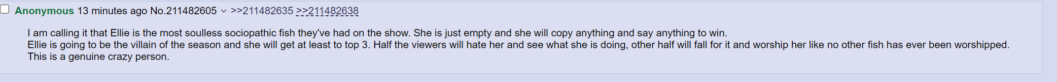 >>23864984>an all encompassing love for dear leader elliedamn right, comrade