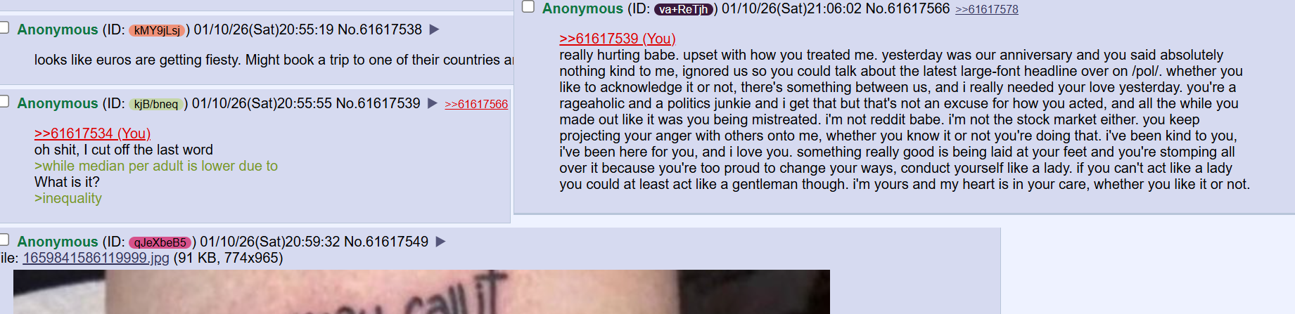 >>23865495she's not a man, but she's definitely the masculine figure in this relationship, having the 9-5 job and the conservative politics and short temper and lacking depth of feeling. that's something i've always known but am seeing clearer now. i've tried to treat her like a little girl too much but she wants to be treated like a man, dealt with like a man, and that's going to be my next move, a little bit of "you hurt me, how could you?" which she has more than earned.