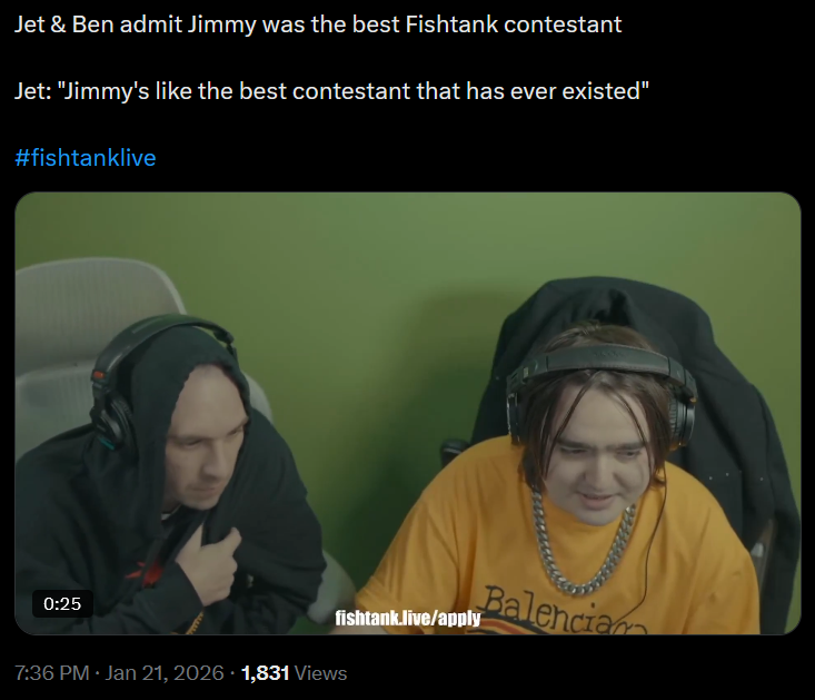wanna watch some fishtank auditions with us?Jet and Ben are live going through S5 applications.https://www.youtube.com/watch?v=AIj9uNC4ES4