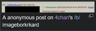 A anonymous post on 4chan's /b/ imageborkrkard