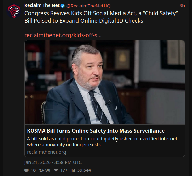 >>23909459>most statesall states, that's federaliirc COPPA requires parental permission for kids to use Internet platforms, while also placing various restrictions on children's accountsmost sites comply by adding >You agree that you're at least 13yoto their ToSthis new law forces operators to block underageb&>[...]shall rely on competent and reliable evidence, taking into account the totality of circumstances, including whether a reasonable and prudent person under the circumstances would have known that the user is a child or teen.also it places restrictions on use of algorithms for children and teenagers, but 4chan's algorithm is bump/sage so lol