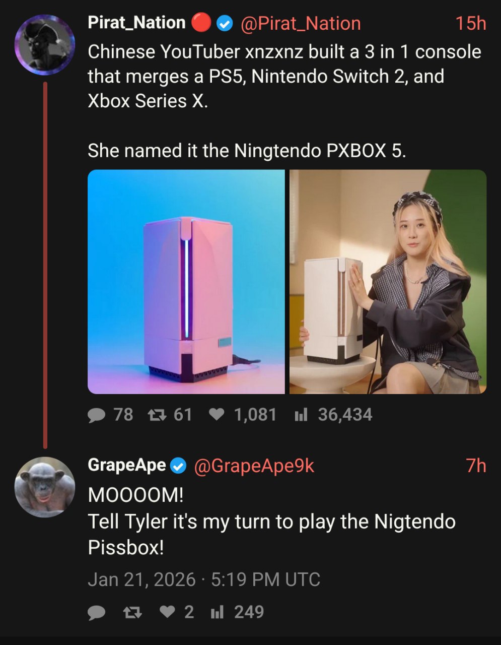 >>23910282You be the judge: https://xcancel.com/search?f=tweets&q=from%3Agrapeape9k+to%3Apirat_nation&since=&until=&min_faves=