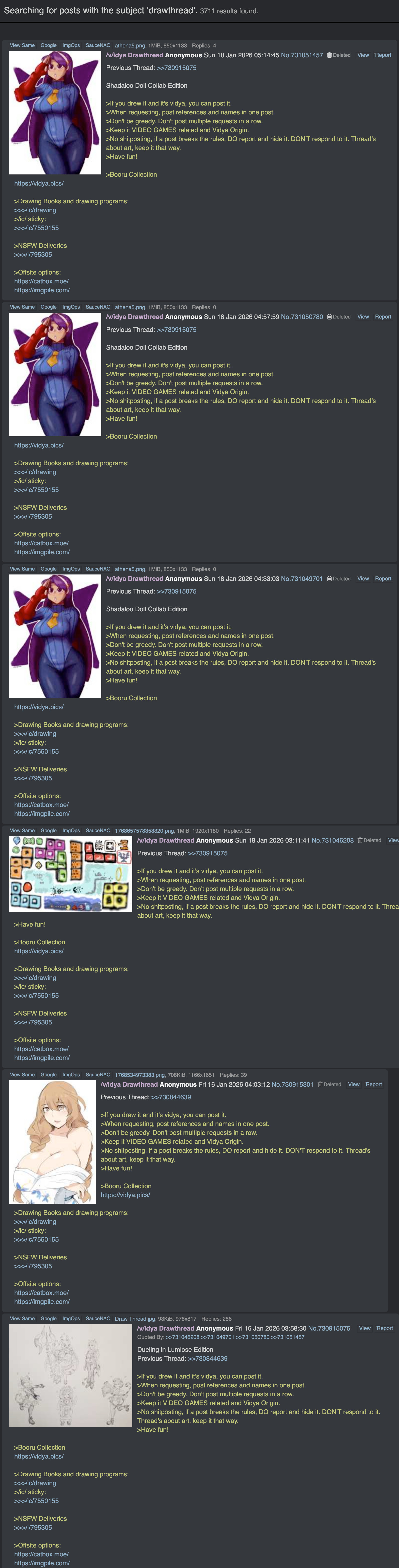 >>23911058https://arch.b4k.dev/v/thread/730915075/#731008147Looks like one of the unpaid shit cleaners got mad and forced draw threads to move to /vg/ since some people were still having fun on /v/ and the board didn't have enough porn, /pol/dditor bait and pajeet_nation shill threads up.