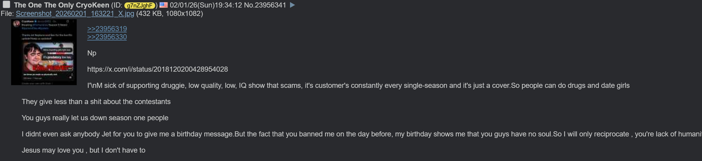 >>23956545>it is when you look and act like Cryokeen I think >normally I hate on the zoomers for age shaming but they are right to do so in this situation