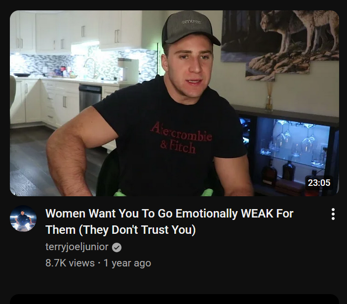 >>23965802>are you telling me you just go around complaining to women all the time about your inner most feelings?nothat's part of the "taking responsibility for your own parts">and you chase after them incessantly, and tell her everything you can about you, so that there's no mystery to yousome people do this & have happy relationshipsintimacy, communication, etc. doesn't have to mean pathologically complaining or being impulsiveand "mystery", idk man, i think that's dumb>>23965803i would guess i know more than most fuckin youtubers, even if i'm a worse orator/writer