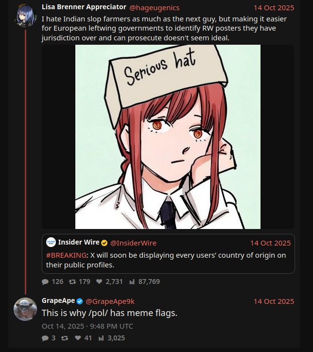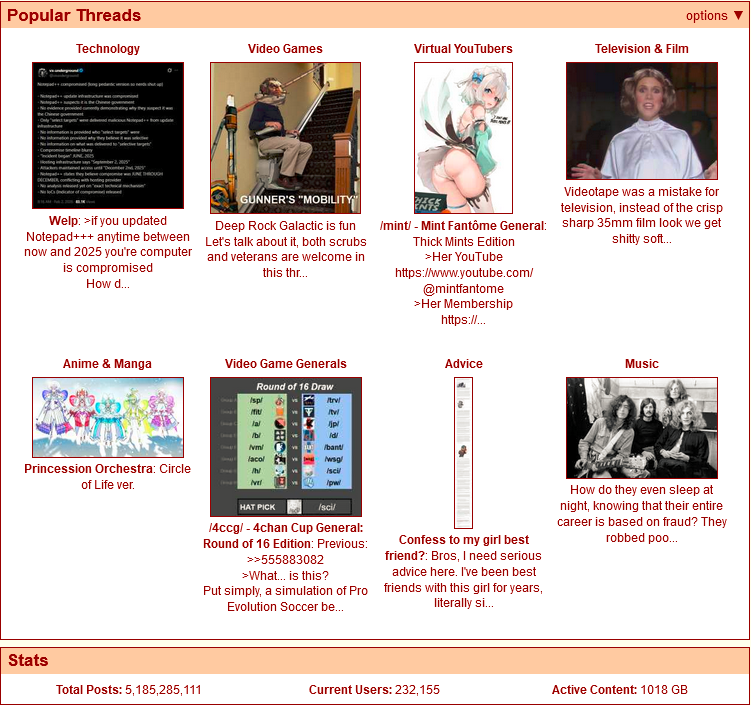 ITT: Interesting and unusual stuff that's happening on the boards you visit.Non-happenings, habbenings, haqqenings, small GETs, complaints about shit boards being shit, known spergs sperging out, personal report buttons and blogposting / avatarfagging et al. belong in the nonexistent /nah/ thread at >>>/bant/nahPremium happenings, goldppenings, diamondppenings, rare GETs, great posts from great boards, users loved by everyone, secret meetups with mods and exclusive entries in blog.4chan.org belong in the 4chan pass-only thread at >>>/vip/happeningsPast happenings: https://wiki.bibanon.org/4chan/HistorySee how active 4chan boards are in real time: https://4stats.io | https://dev.4stats.io (for charts)Search 4chan: https://find.4chan.orgArchives: https://wiki.archiveteam.org/index.php/4chanSelf-serve ads: https://4ch-ads.pages.dev/Enhance your 4chan Experience (no 4chanX): https://rentry.org/4chan_Userscripts_1Enhance your 4chan Archive Experience: https://rentry.org/FoolFuuka_UserscriptsYotsuba catalog: https://catalog.neet.tv/4chan media browsers: https://thread-puller.party/ (Images) & https://www.4webm.org (Webms / [wsg])How to access IRC and contact the mods: https://desuarchive.org/qa/thread/1654916/#1690512Previous: >>23949831 | https://archive.palanq.win/bant/thread/23949831/