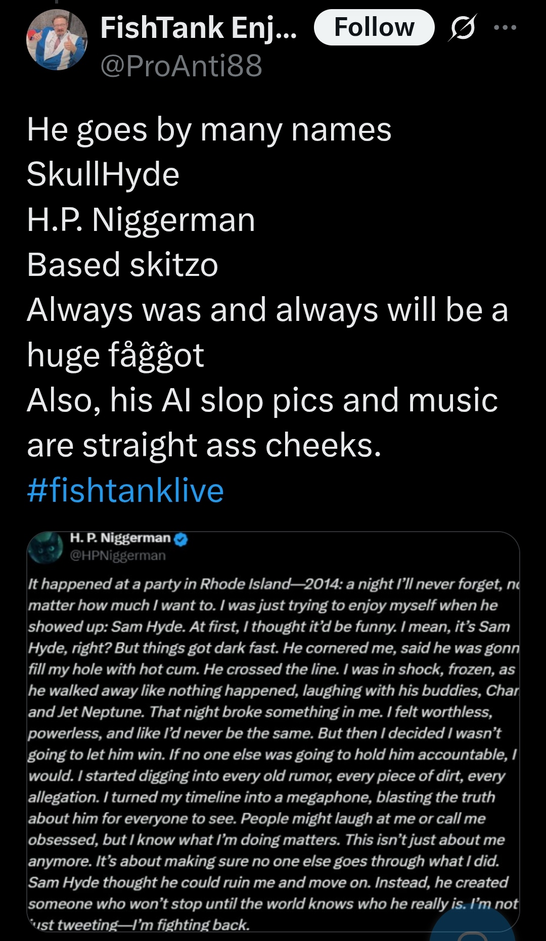 post sam hyde fishtank is going to be such a fucking shitshow i'm honestly looking forward to it and bullying jet non stop for losing sam