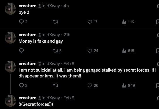 I am not suicidal at all I'm being gang stalked by couner-espionage forces