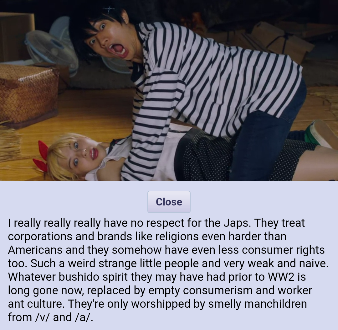 >you jiniggacels has some sick minds I swear>too much hentai and pachinko it's like an island of incels they're gonna have to importing foreigners with high T now chat