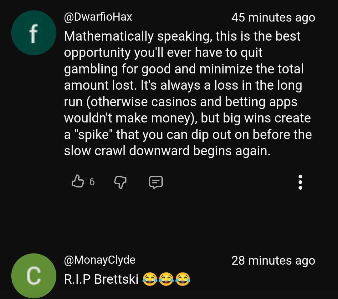 >>23997435>lol the POORS in the comments still don't understand that tricking stupid people into thinking they can win big at the casino is her JOB chat>Taylor always wins chat