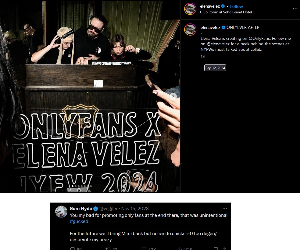 Sounds like a couple of the MDE guys were at the Elena Velez fashion show the other day (that's where bliccy and clav met up). I'm not going to look to deeply to find footage since we already have pic related from a past year and know Sam is funded by Thiel, but it is what it is