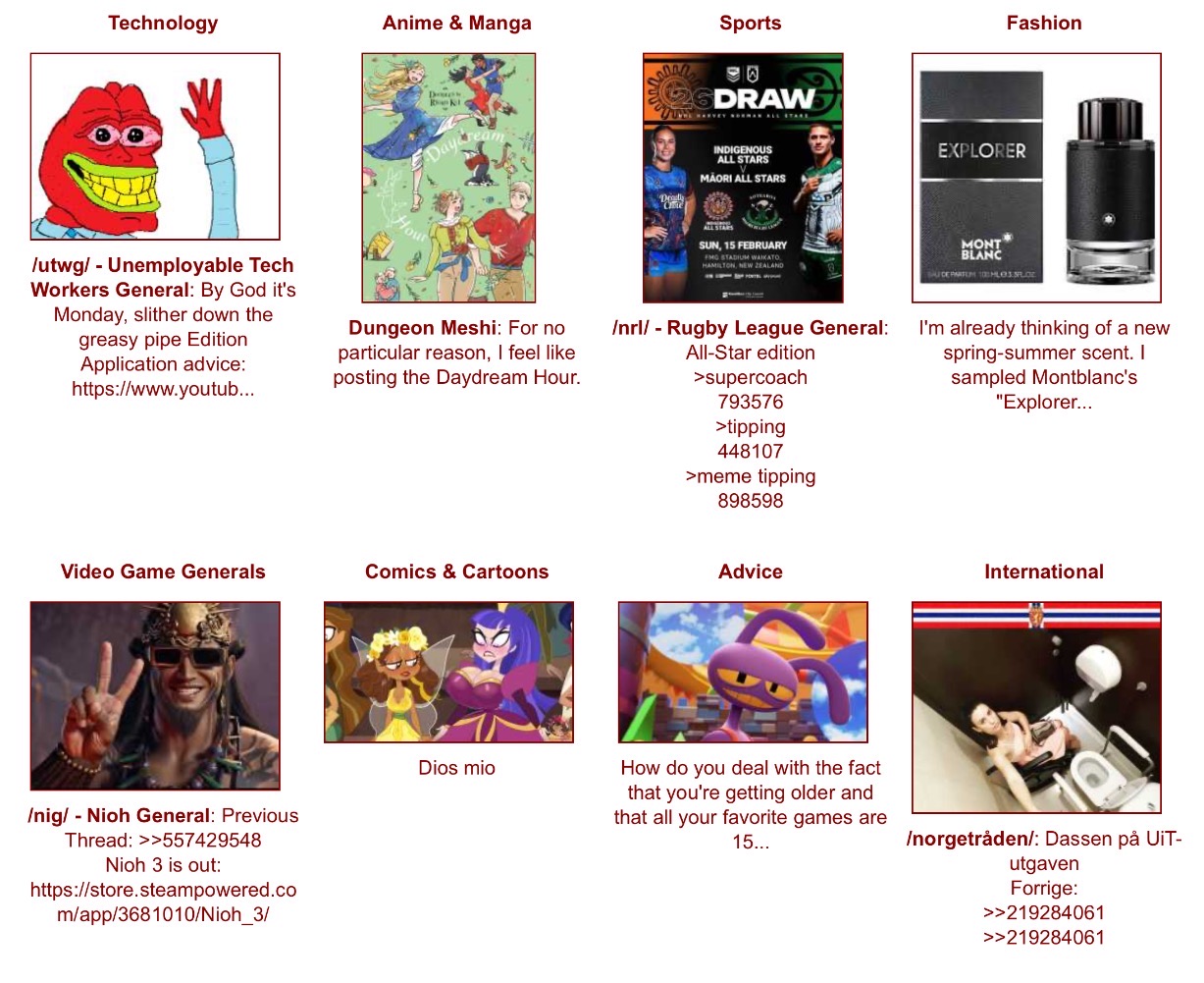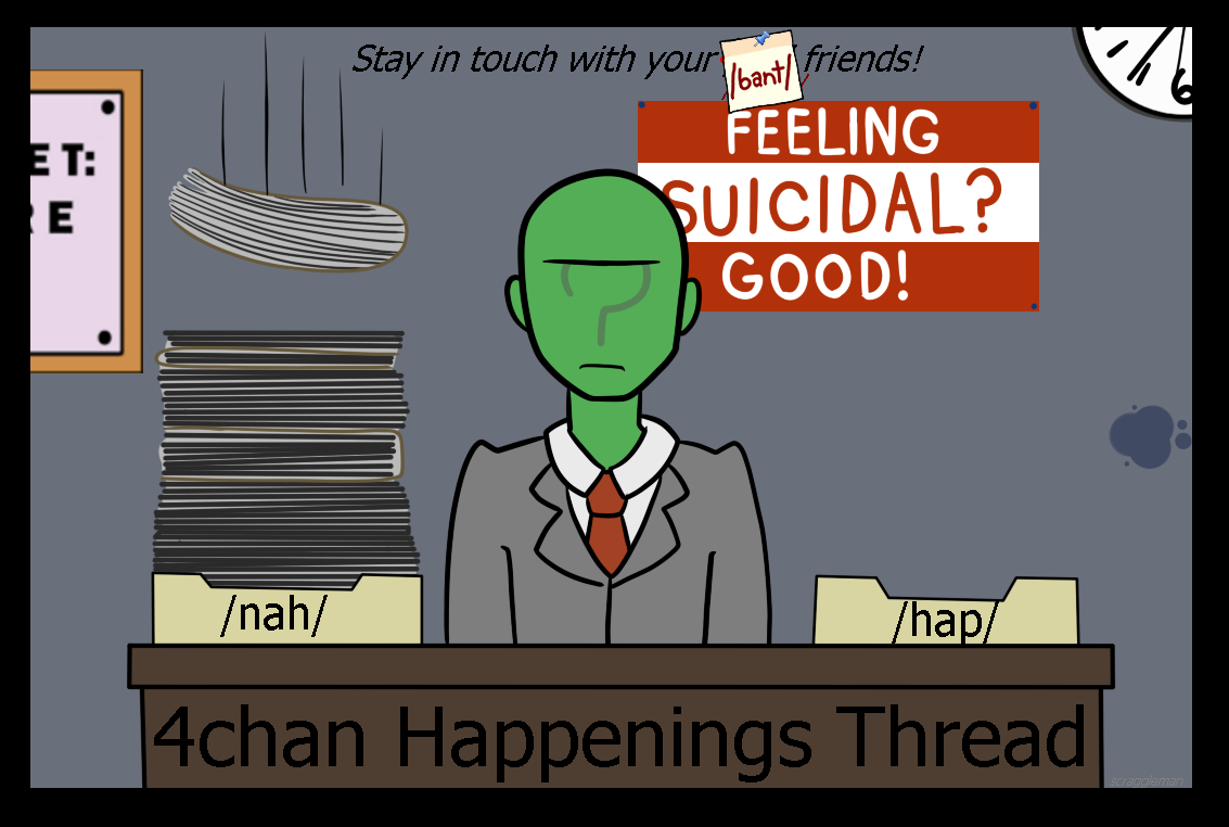 ITT: Interesting and unusual stuff that's happening on the boards you visit.Non-happenings, habbenings, haqqenings, small GETs, complaints about shit boards being shit, known spergs sperging out, personal report buttons and blogposting / avatarfagging et al. belong in the nonexistent /nah/ thread at >>>/bant/nahPremium happenings, goldppenings, diamondppenings, rare GETs, great posts from great boards, users loved by everyone, secret meetups with mods and exclusive entries in blog.4chan.org belong in the 4chan pass-only thread at >>>/vip/happeningsPast happenings: https://wiki.bibanon.org/4chan/HistorySee how active 4chan boards are in real time: https://4stats.io | https://dev.4stats.io (for charts)Search 4chan: https://find.4chan.orgArchives: https://wiki.archiveteam.org/index.php/4chanSelf-serve ads: https://4ch-ads.pages.dev/Enhance your 4chan Experience (no 4chanX): https://rentry.org/4chan_Userscripts_1Enhance your 4chan Archive Experience: https://rentry.org/FoolFuuka_UserscriptsYotsuba catalog: https://catalog.neet.tv/4chan media browsers: https://thread-puller.party/ (Images) & https://www.4webm.org (Webms / [wsg])How to access IRC and contact the mods: https://desuarchive.org/qa/thread/1654916/#1690512Previous: >>23999996 | https://archive.palanq.win/bant/thread/23999996/