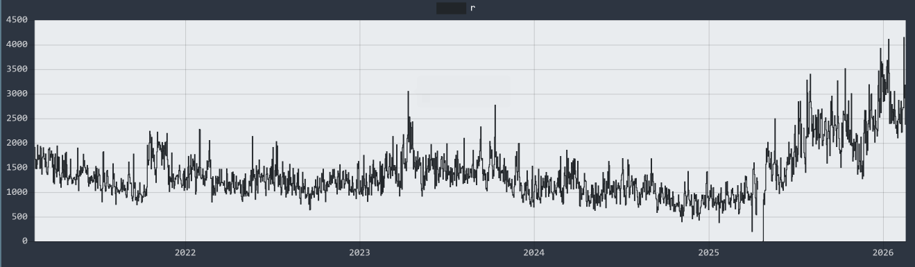 >>24024054750k was in october 2024https://desuarchive.org/r9k/thread/79247471/#792771884chan has lost 25% of its userbase in 16 months