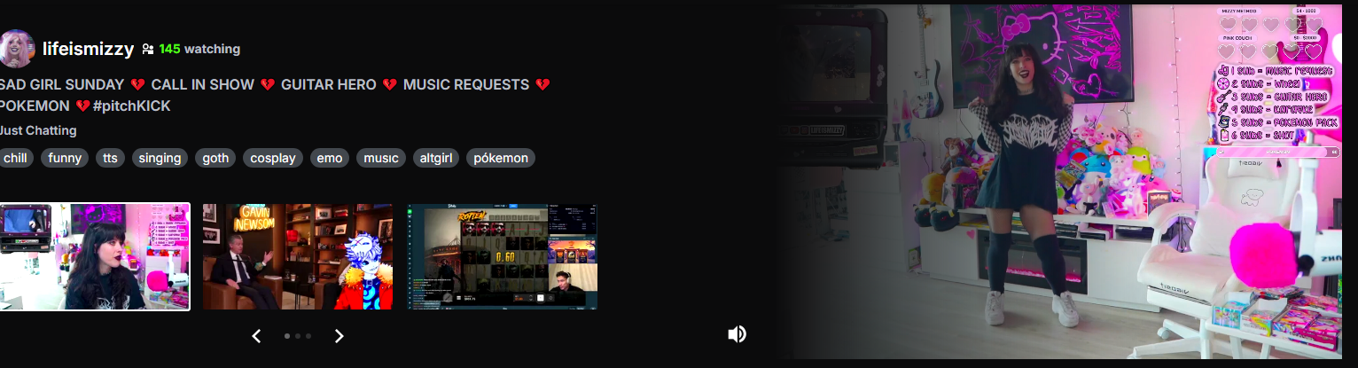 Mizzy is on the front page of Kick dot com