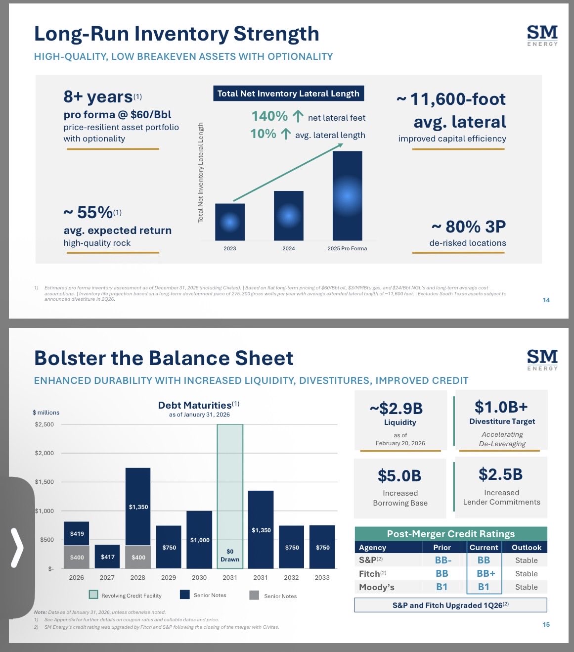 >>24061075with steiners higher oil prices SM Energy will drown in money and buy more acreages