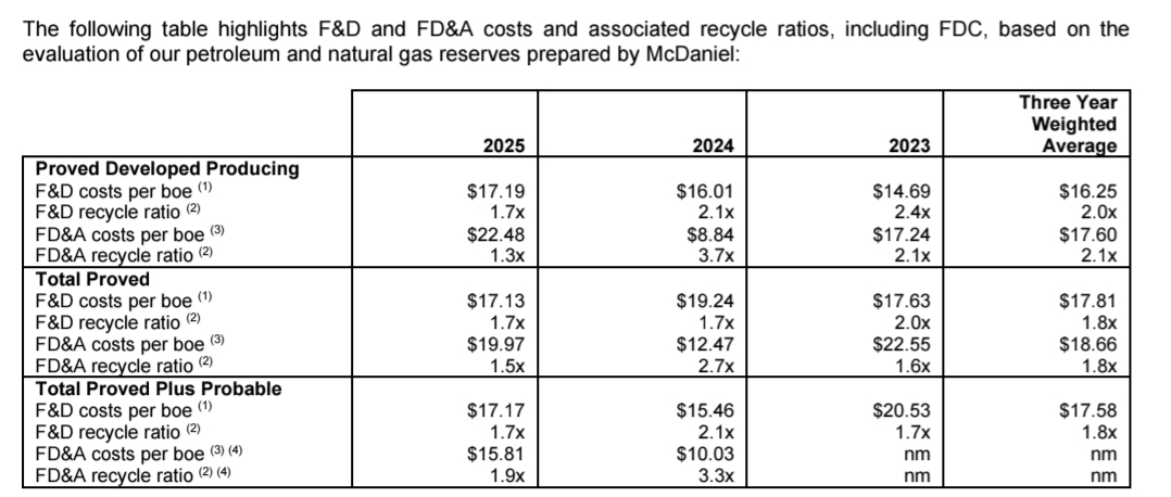 >>24059958desu I was kind of taking a piss with the NPV10 comment. SM is trading below blowdown PDP PV10, that's the present value of the currently flowing wells i.e. how much discounted cash flows would they generate by sitting on their asses. Valuation wise that's not a bad deal in general actually. WCP trades at 2x blowdown NPV10. The P/S comment was genuine though, it only looks at the price of the stock relative to revenue which tells you nothingThe big difference between WCP and SM that really matters is that WCP has a very strong drilling inventory, underexploited acreage and lots of room to grow while SM has Swiss cheese acres with not much room for organic growth.Reserves or rather reserve growth are the lifeblood of E&Ps, so you want to see the reserves grow faster than the company depletes them through production. Growing reserves organically not only signals that cash flow duration will be higher but it's also usually kind of a prerequisite for production growth too. SM started 2025 with total Proved reserves of 678 million boe's and ended it with 673 million boe's — LESS reserves net of production despite of course drilling new wells over the course of the year. That's a negative replacement ratio! 2024 wasn't much better: they started with 605mmboe and ended with 678mmboe — but 103mmboe came from acquisitions, they had to go into the market to buy acres, it was not organic growth.WCP on the other hand has a long track record of organic reserve and production growth (picrel last 3y). Sure, WCP also merged with VRN, but both companies had consolidated the best and largest acreage in the Montney & Duvernay while SM and CIVI have fairly limited inventory runway. WCP has double the reserve life index, and will keep extending it as they develop their assets. I'm not sure what plans SM has other than acquiring more acres to keep the treadmill going. This explains the valuation difference between the two which is likely to persist and grow over time.