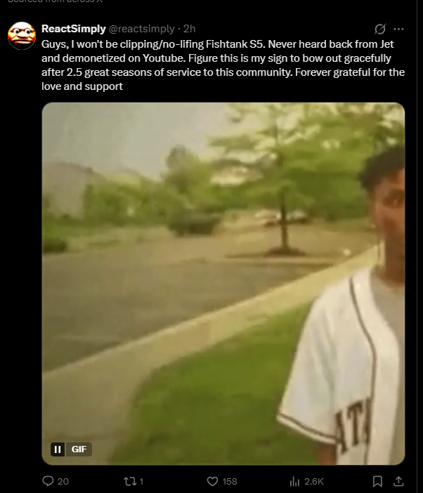 Fishtank winner editionNEWS:-- S3 episodes release weekly starting Sunday March 8th! https://x.com/fishtankislive/status/2027573383261544585-- Two seasons happening at once... are the wiggers RETARDED?-- CONFIRMED: Cole has MORE charisma than Brian!-- Estanque is LIVE! https://www.youtube.com/watch?v=CQMPles050E [Embed]-- SEASON 5 STARTS MARCH 15TH https://x.com/fishtankislive/status/2023951871514149321-- S5 location: Sandy Springs GA, duration: 30 days, S4 fish not returning, and Sam OBVIOUSLY STILL IS hosting!>Links:https://www.fishtank.live/https://x.com/fishtankislivehttps://old.reddit.com/r/fishtanklive/https://www.instagram.com/fishtank.live/https://www.youtube.com/@fishtankislive/videoshttps://fishtanklive.fandom.com/wiki/Fishtanklive_Wikihttps://elestanque.live/https://x.com/Estanquedotlivehttps://www.youtube.com/@ElEstanque_LivePrevious: >>24062961