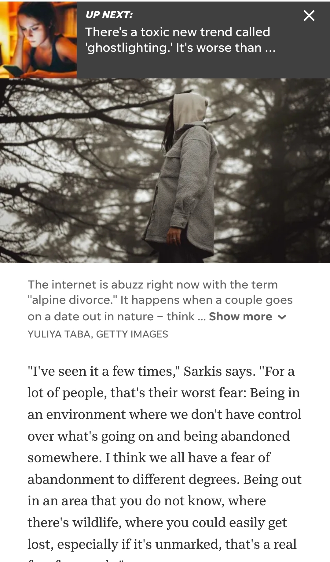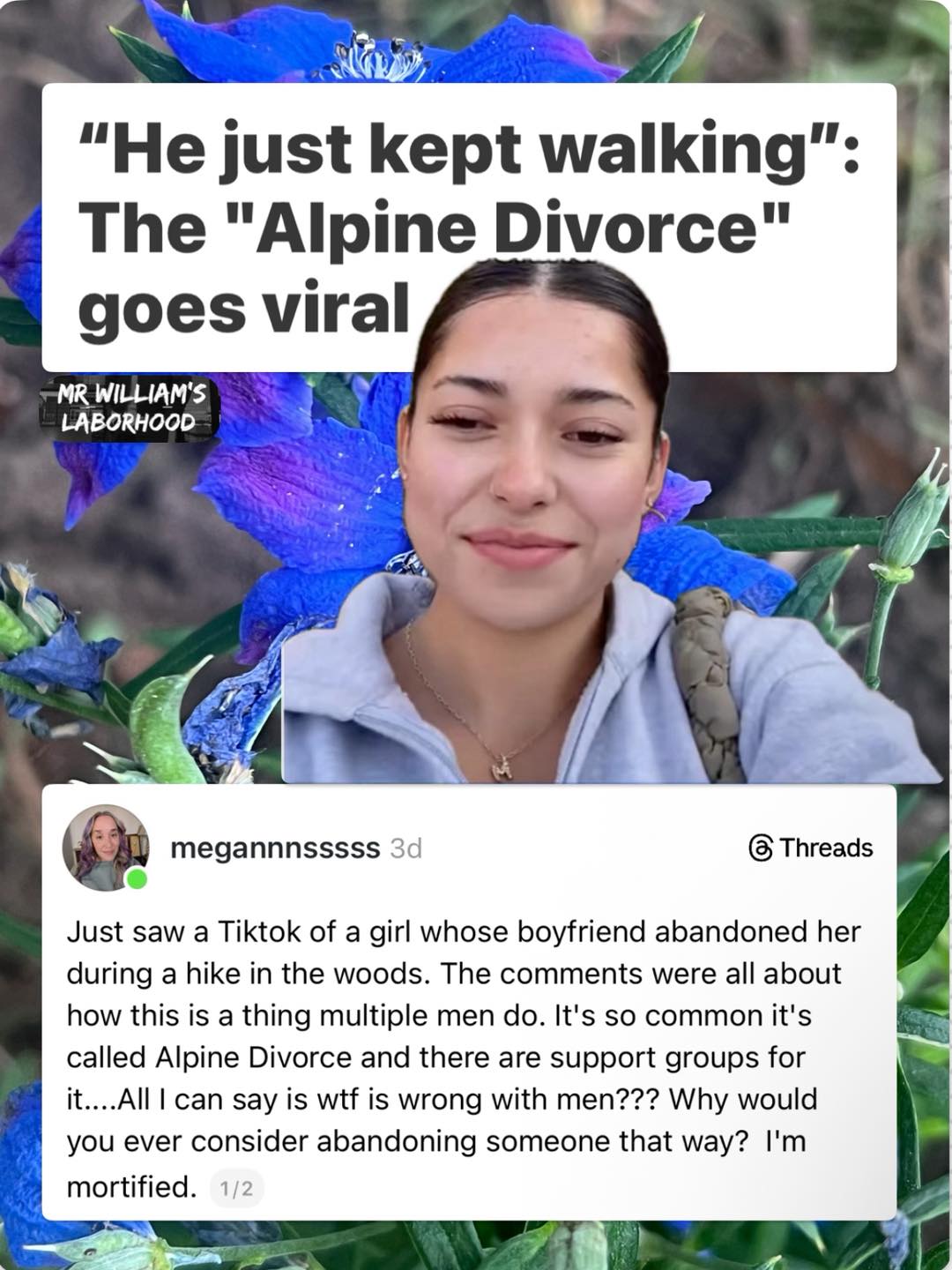 >>24064987it never happened. it was a social media video (fake) that she's responding to. She will never hike with a man now because she believes hiking is some kind of murderous ploy to get a woman away from witnesses. Social media was a mistake, women in particular are damaged profoundly by it.